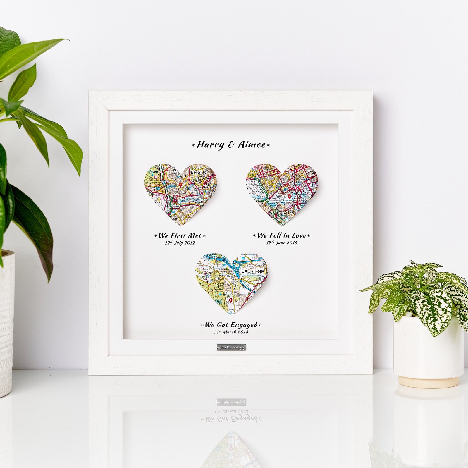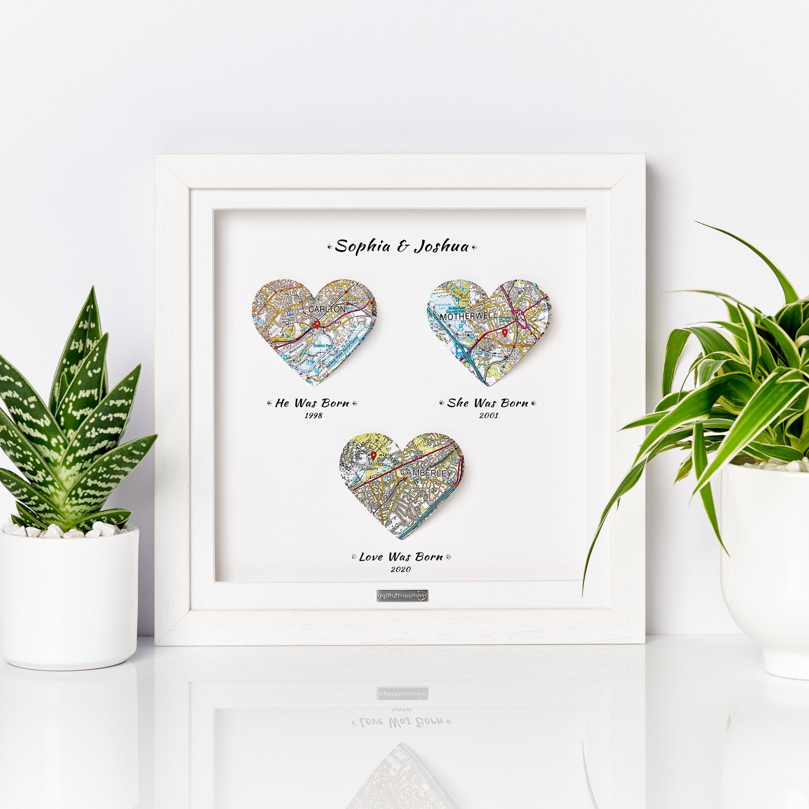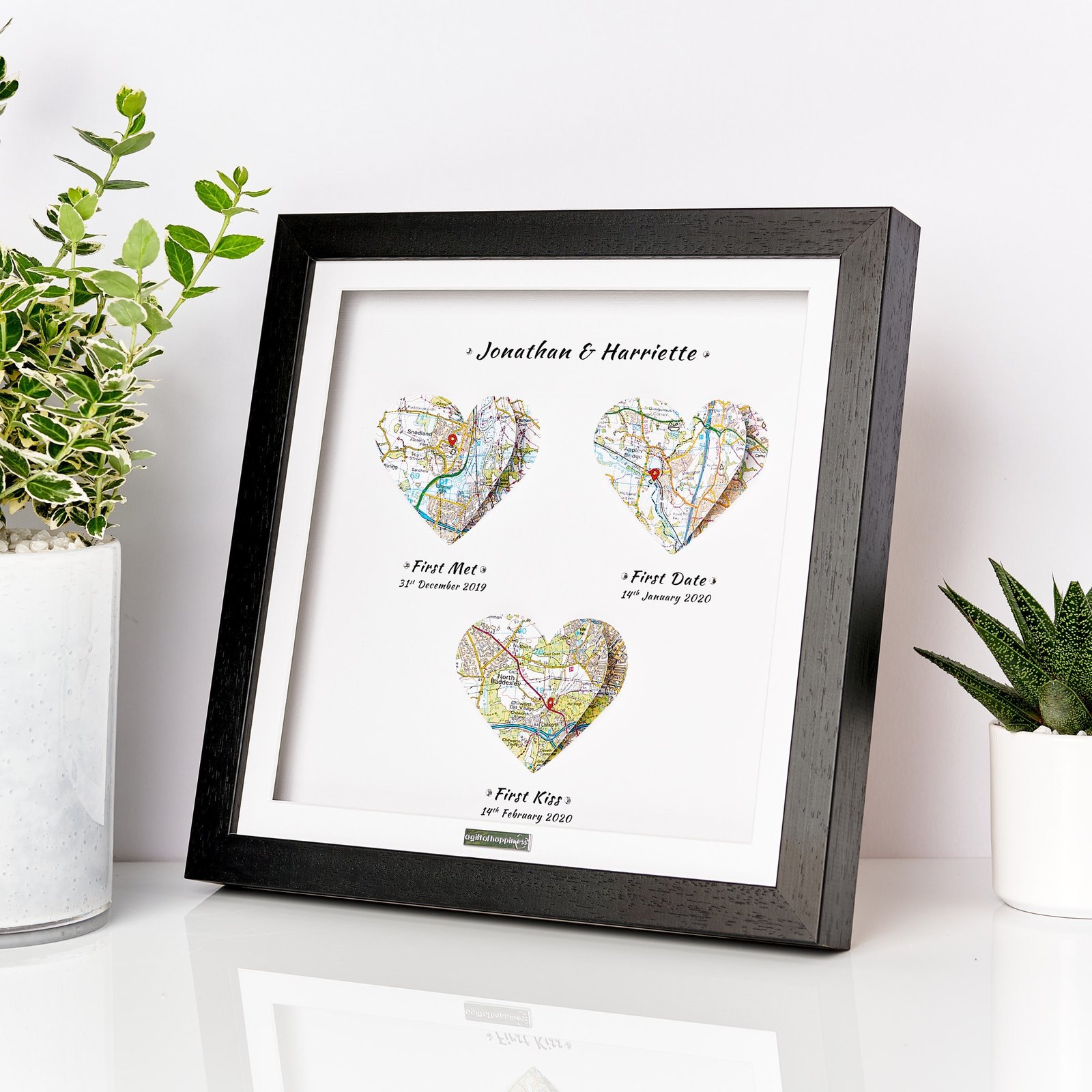 Recommendation: Looking for a one-of-a-kind anniversary gift that will touch the heart of your partner? Consider our Heart Maps Anniversary Gift, featuring three heart-shaped maps that capture the essence of your love story. This personalized keepsake is a meaningful way to commemorate the milestones of your relationship, from the first meet to the first kiss. Surprise your significant other with a unique and sentimental gift that celebrates your journey of love and creates a lasting memory of your special moments together.