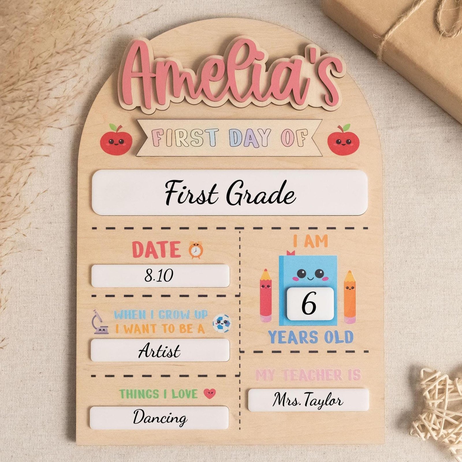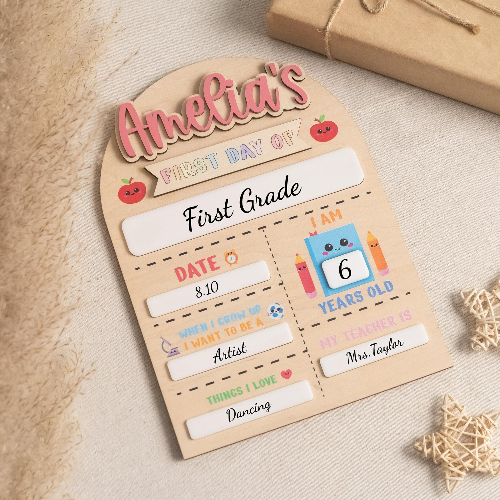 The reusable design makes it a budget-friendly choice for parents. You can update details such as grade, age, or even “dream job” with a simple dry-erase marker, turning it into an evolving record of your child’s school journey.