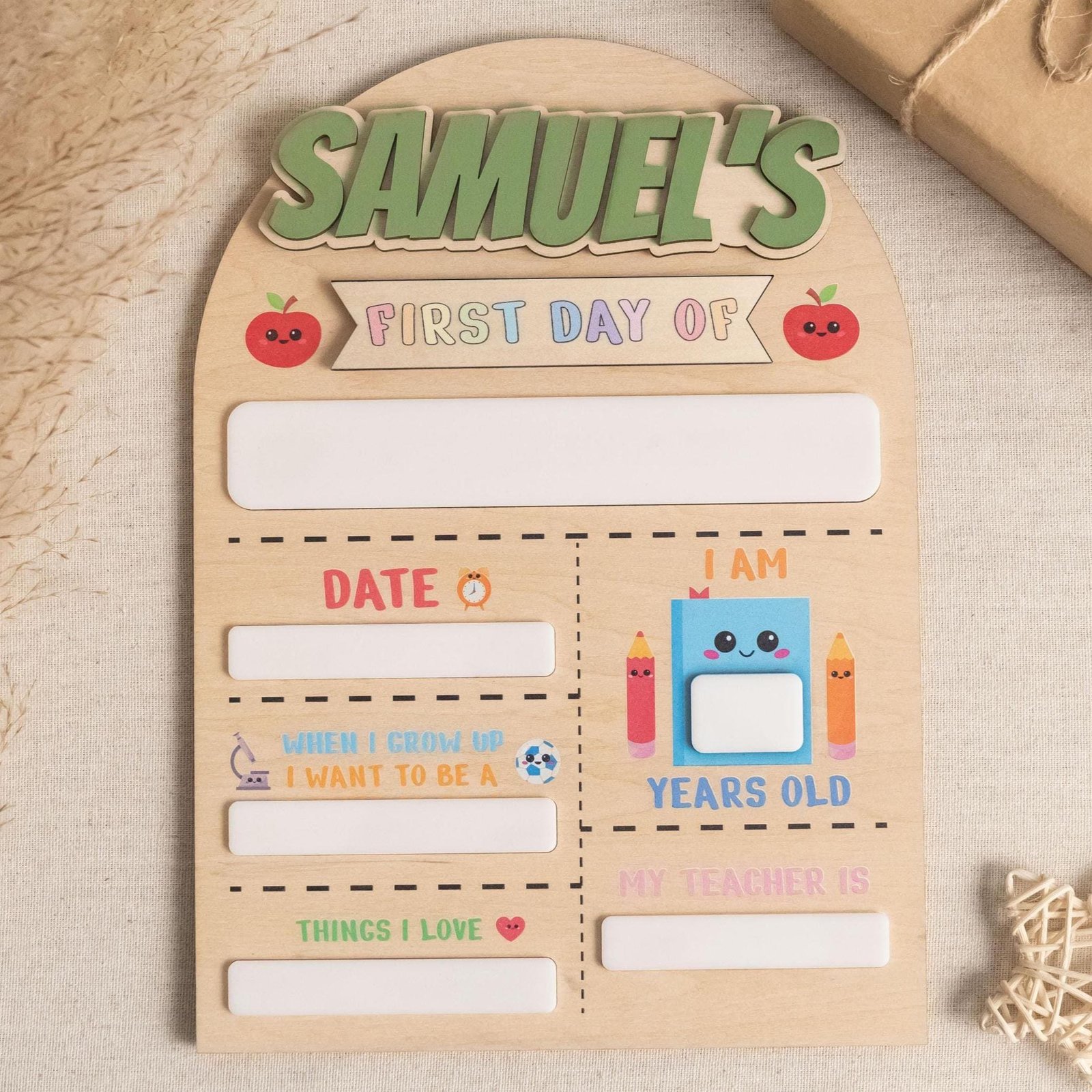 ✔ Personalized with your child’s details ✔ Reusable for multiple school years ✔ Double-sided (first and last day) for full use ✔ High-quality materials built to last ✔ Creates a meaningful family tradition