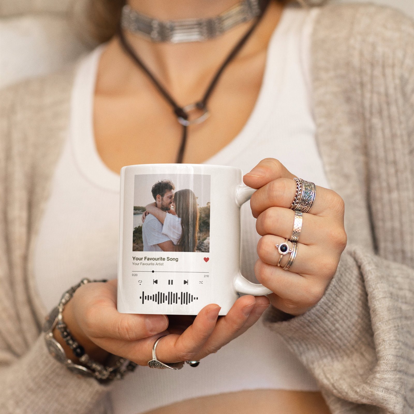 This mug is especially perfect for music lovers who want to showcase their favorite tracks in a stylish, practical way. With a customizable song code design, some variations even allow you to scan the code to instantly play your chosen song — turning your mug into both a keepsake and a conversation starter.