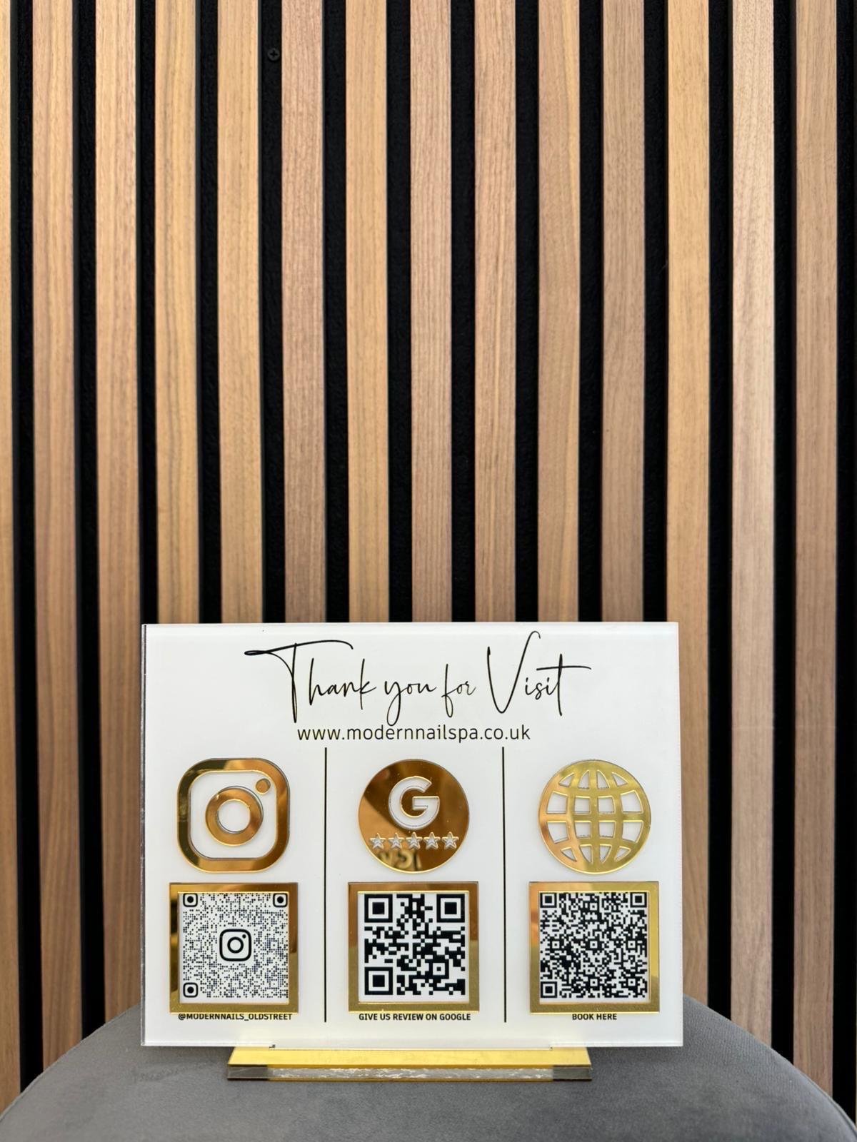 With options for multiple QR codes and a sleek design that matches your décor, this sign is more than just a display — it’s a smart business tool that keeps your brand modern, accessible, and professional.