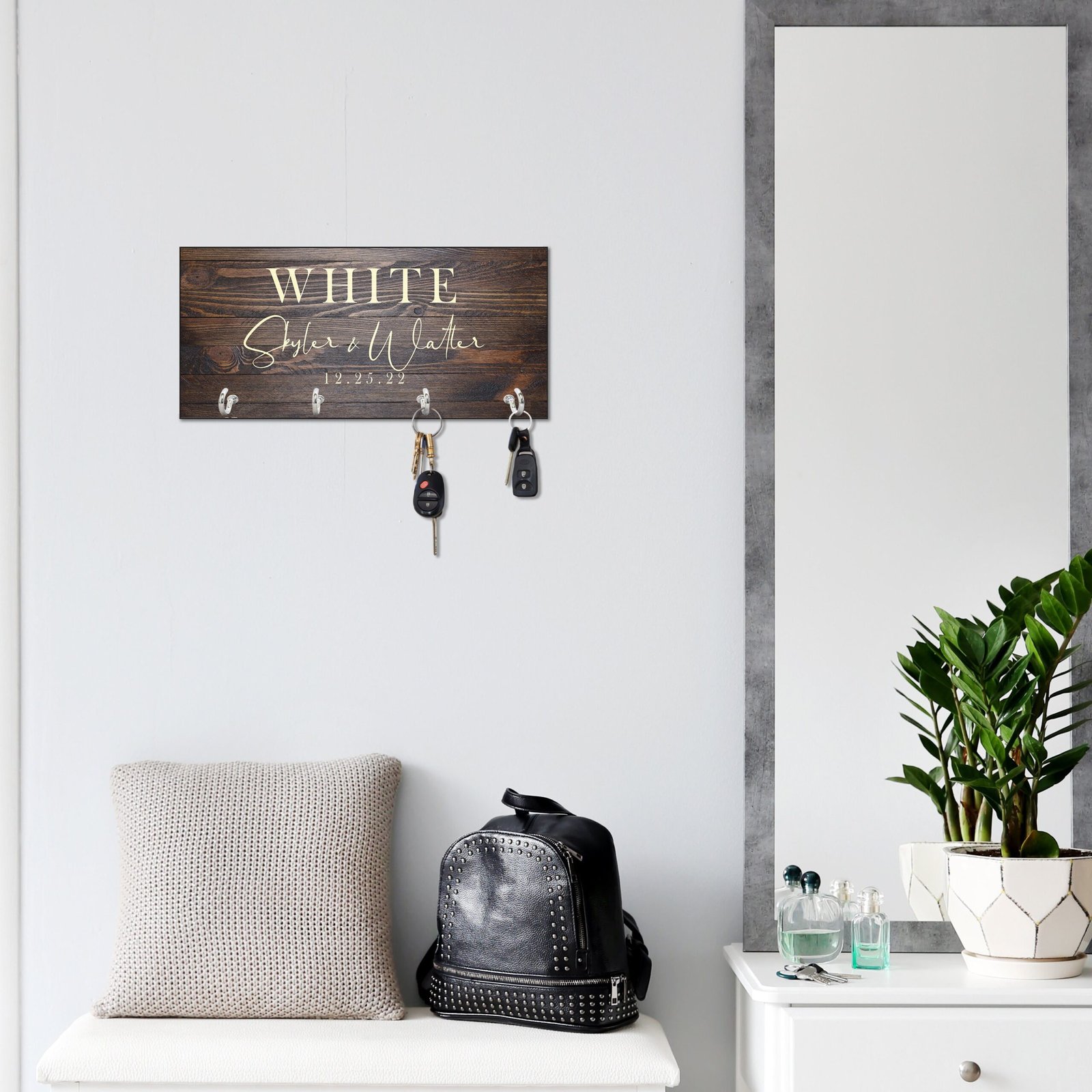 Whether you’re gifting it to a newlywed couple, new homeowners, or buying it for your own family, this charming piece is a functional yet decorative addition to any entryway or office wall.