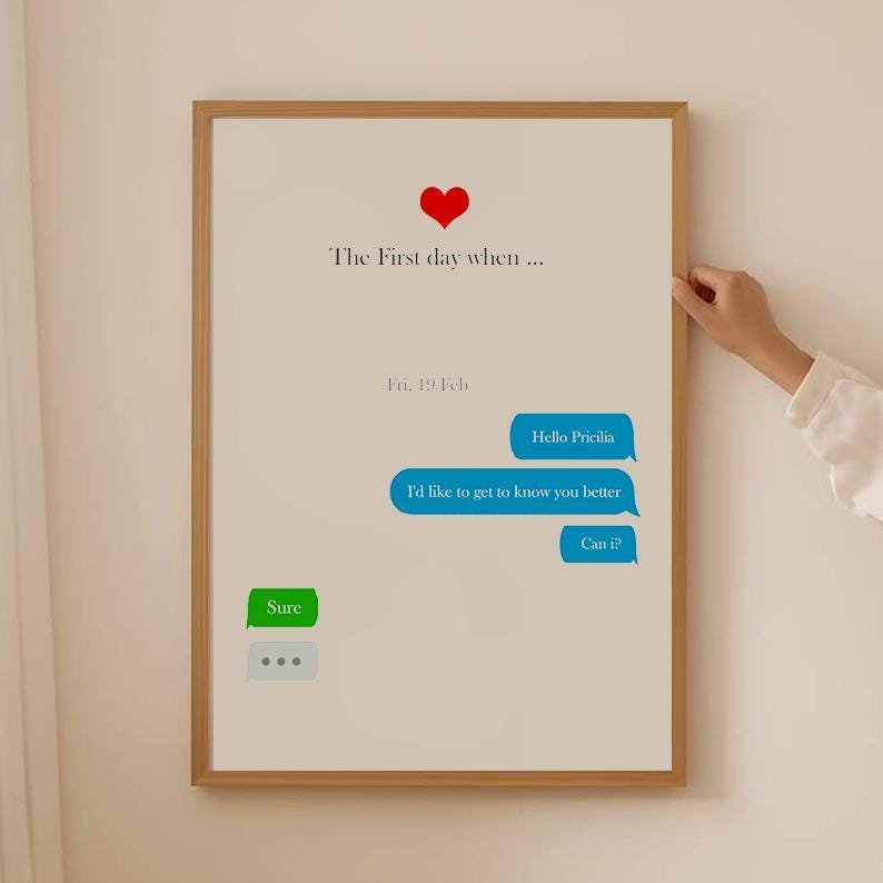 This isn’t just a printed chat bubble—it’s a window into your story. A snapshot of when everything began. Something to glance at and smile. Something that says “this is us.”