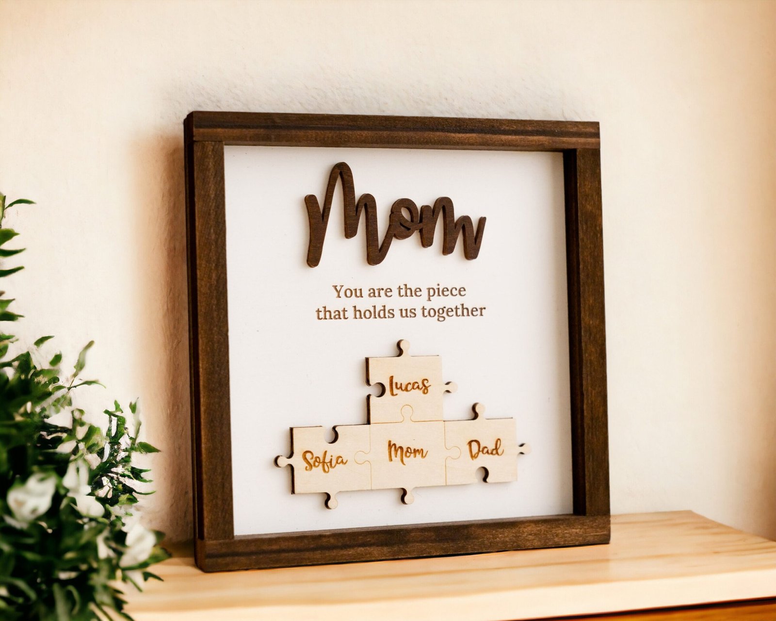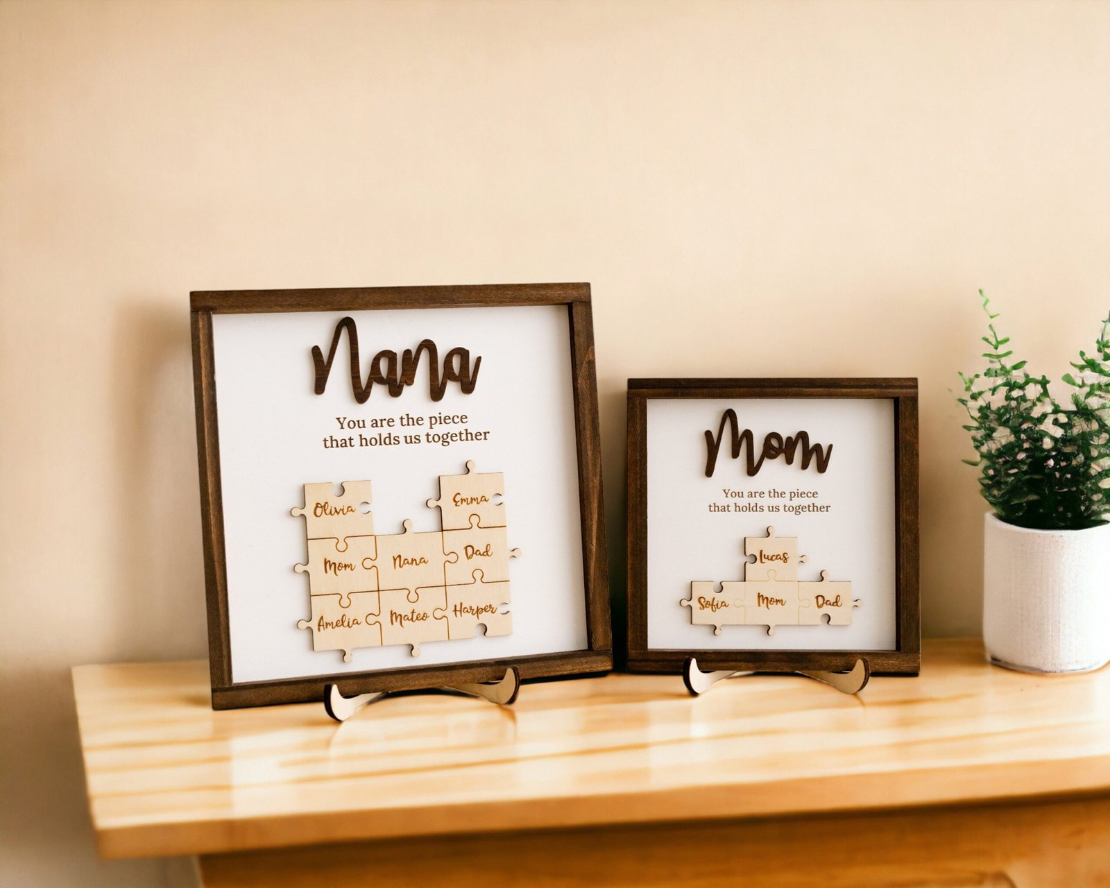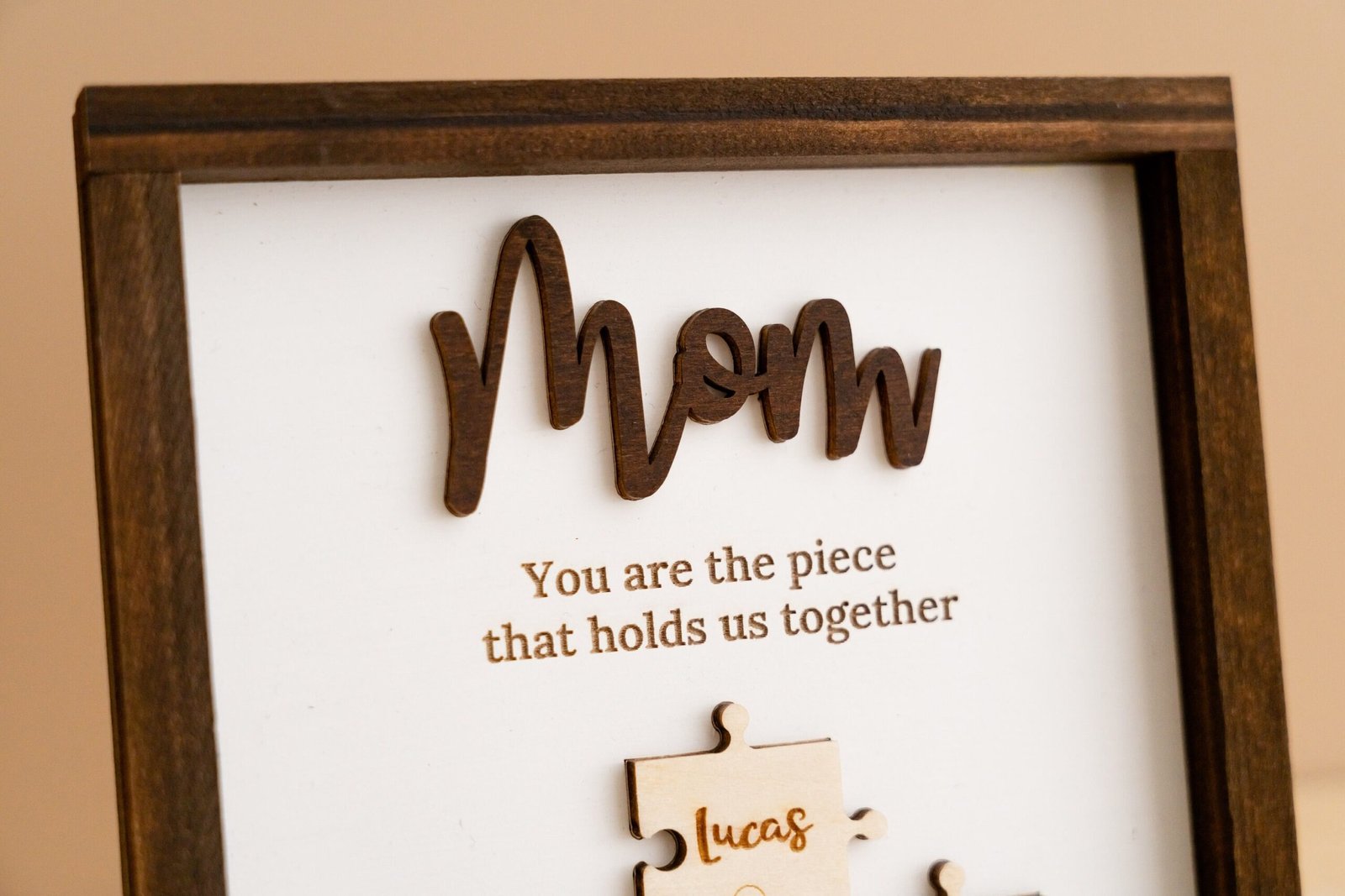The Mama Puzzle Piece Sign is more than just home décor—it’s a symbol of love, unity, and appreciation. Designed to reflect the powerful role a mother plays in holding her family together, this handcrafted sign combines elegant design with deep emotional value. Featuring a customizable set of puzzle pieces engraved with children’s or family members’ names, this heartfelt piece is ideal for Mother’s Day, birthdays, Christmas, or any time you want to show your gratitude to the matriarch in your life.