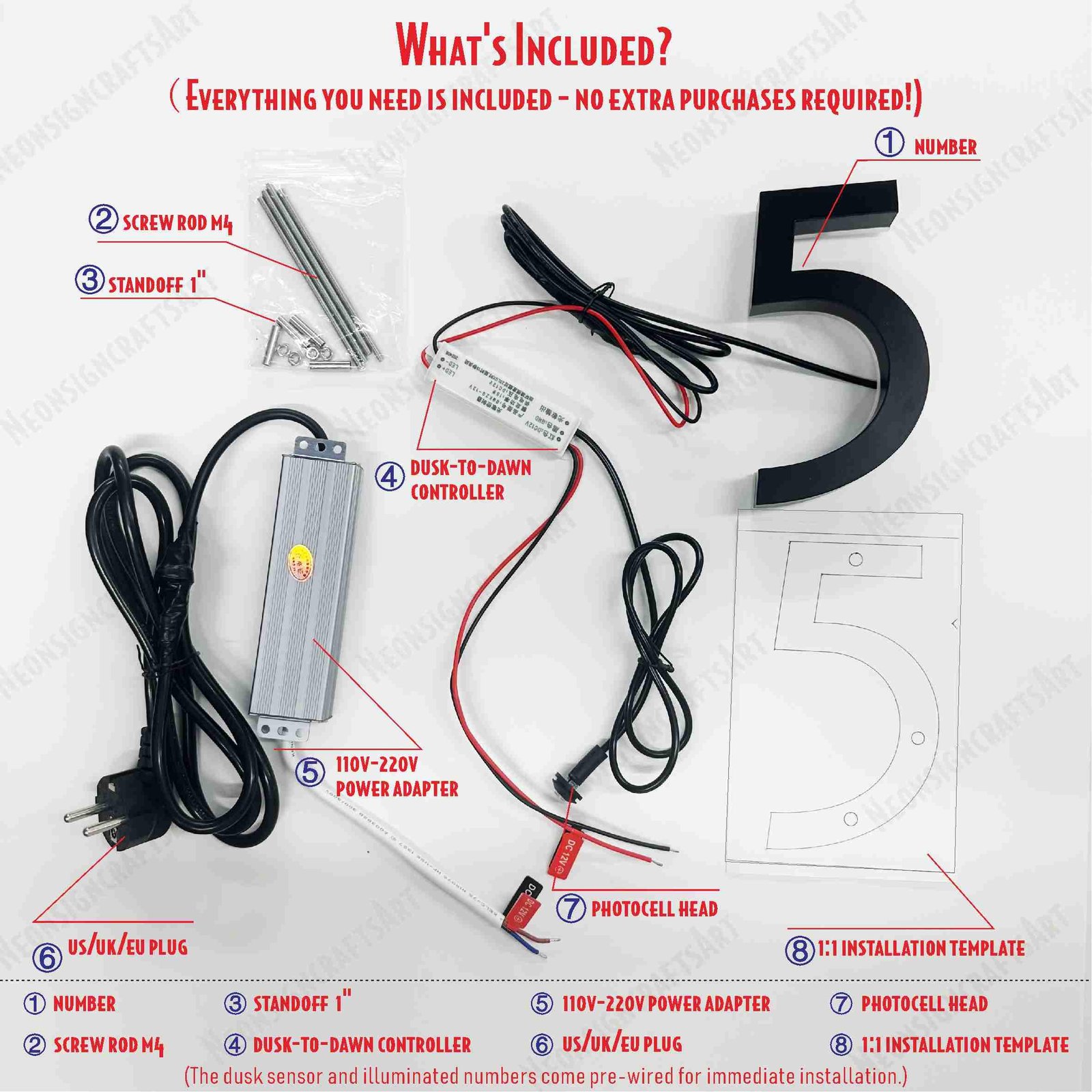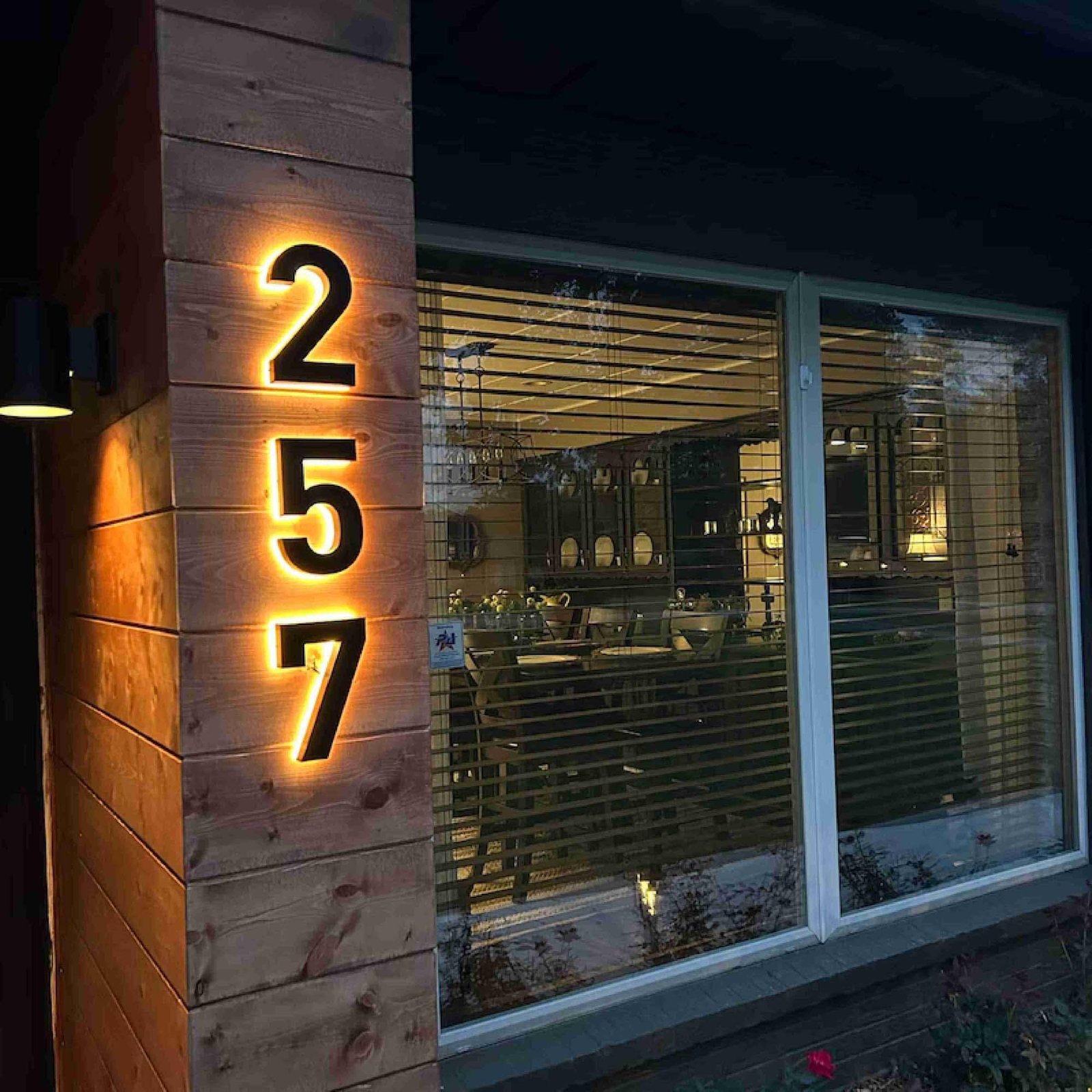 • Optional LED Backlighting Add a warm, modern glow to your address numbers for improved visibility and nighttime curb appeal. Energy-efficient and long-lasting.