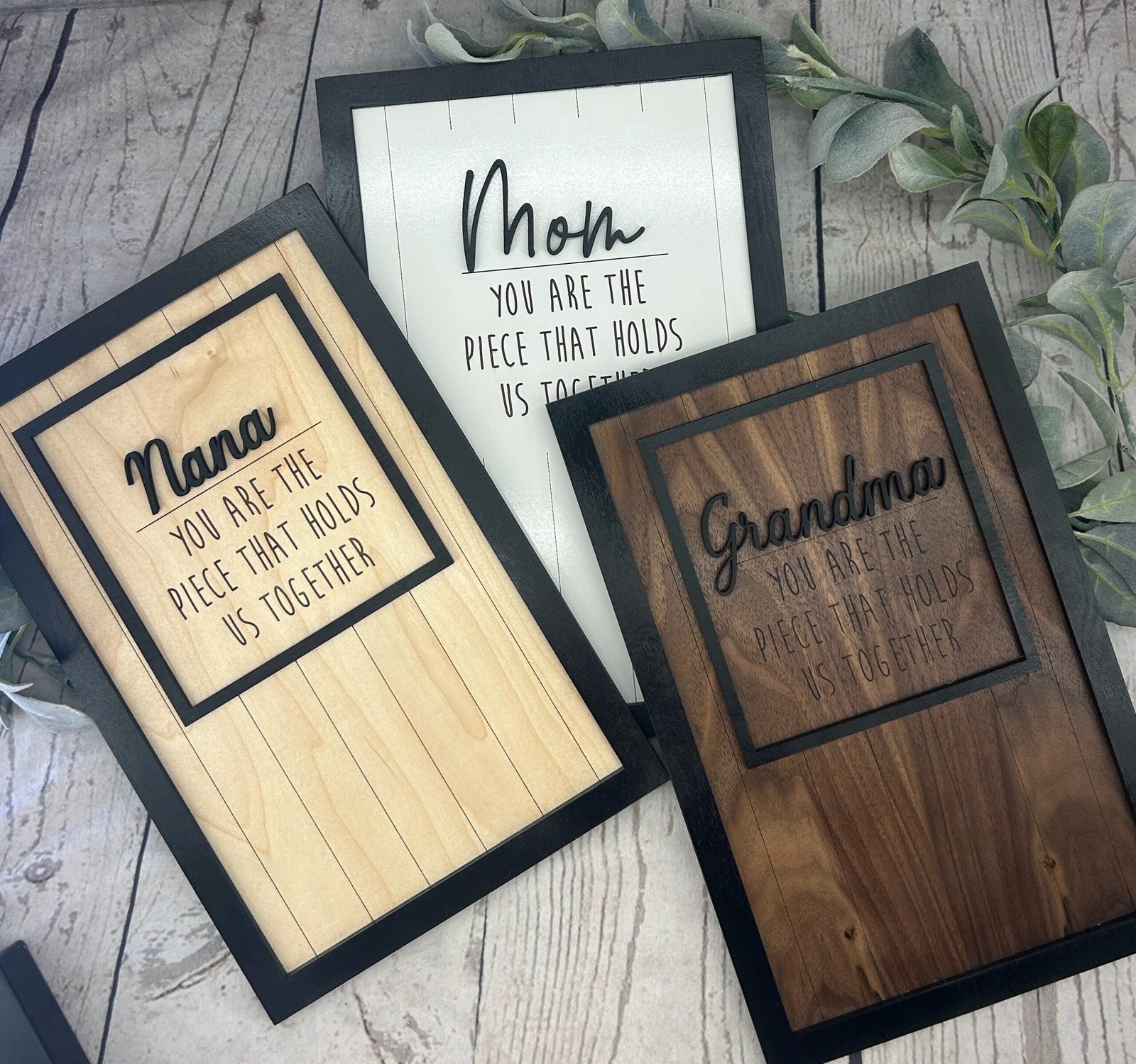 Looking for a heartfelt and unique gift for Mom, Grandma, or a special woman in your life? The custom engraved wood puzzle sign is a perfect choice! Crafted from high-quality wood and custom engraved with your choice of message, this puzzle piece sign is a wonderful addition to any home.
