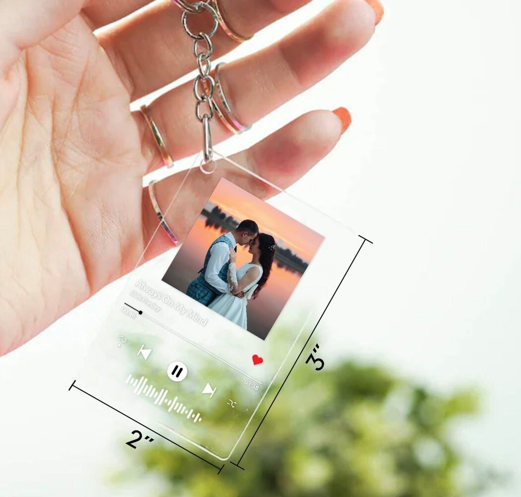 - 🎶 Custom Song Display Design Styled like a modern streaming music player, your keyring will display your chosen track title, artist name, and album artwork (or your personal photo).