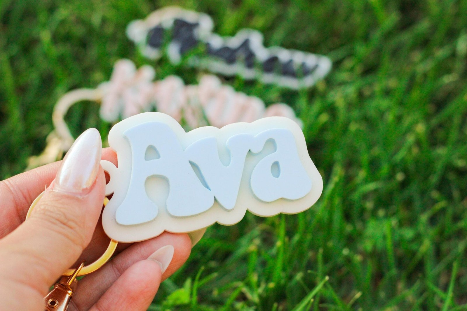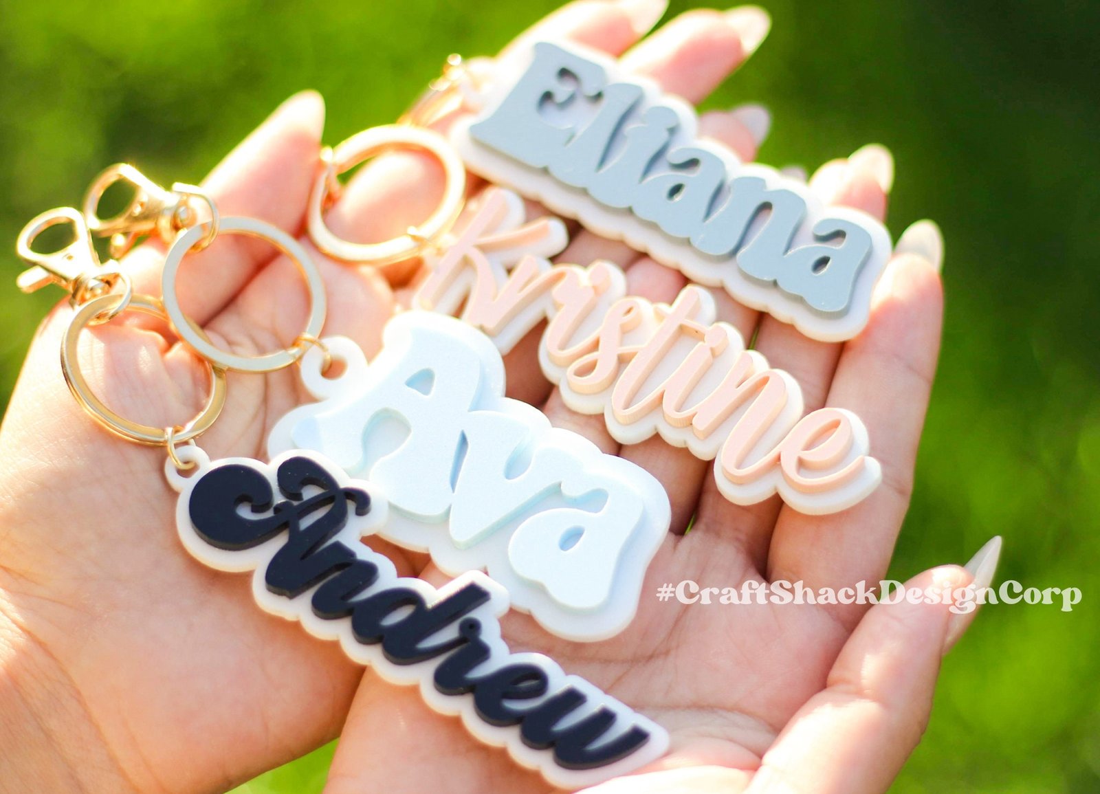 Personalized Acrylic Keychain, Acrylic Name Tag, Backpack Name Tag, Diaper Bag, Custom Name Keychains, Lunchbox Name Tag, Retro Name Keep your style bold and your belongings safe with our colorful, custom acrylic name tags. Ideal for all ages and all occasions.