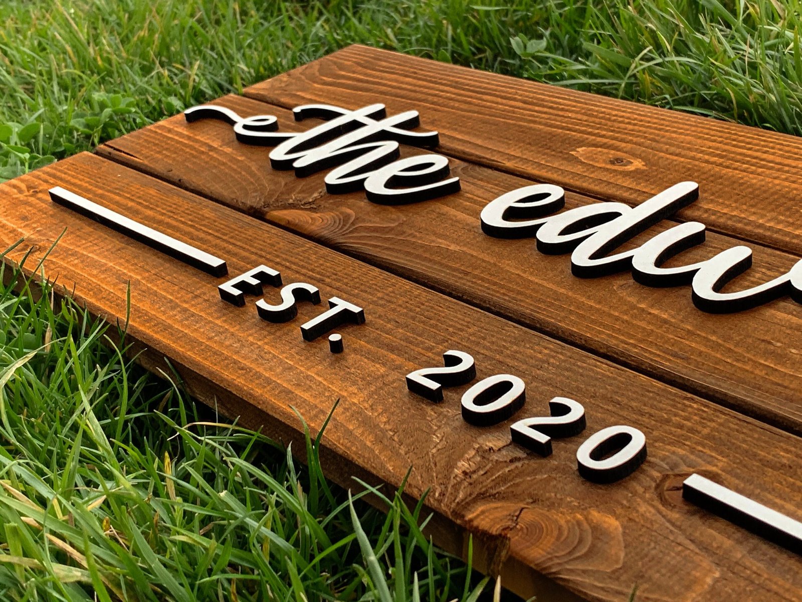 - ✂️ 3D Laser-Cut Personalization Precision-cut MDF letters are carefully layered on the wooden base for a beautiful raised, 3D appearance that enhances visibility and adds depth.
