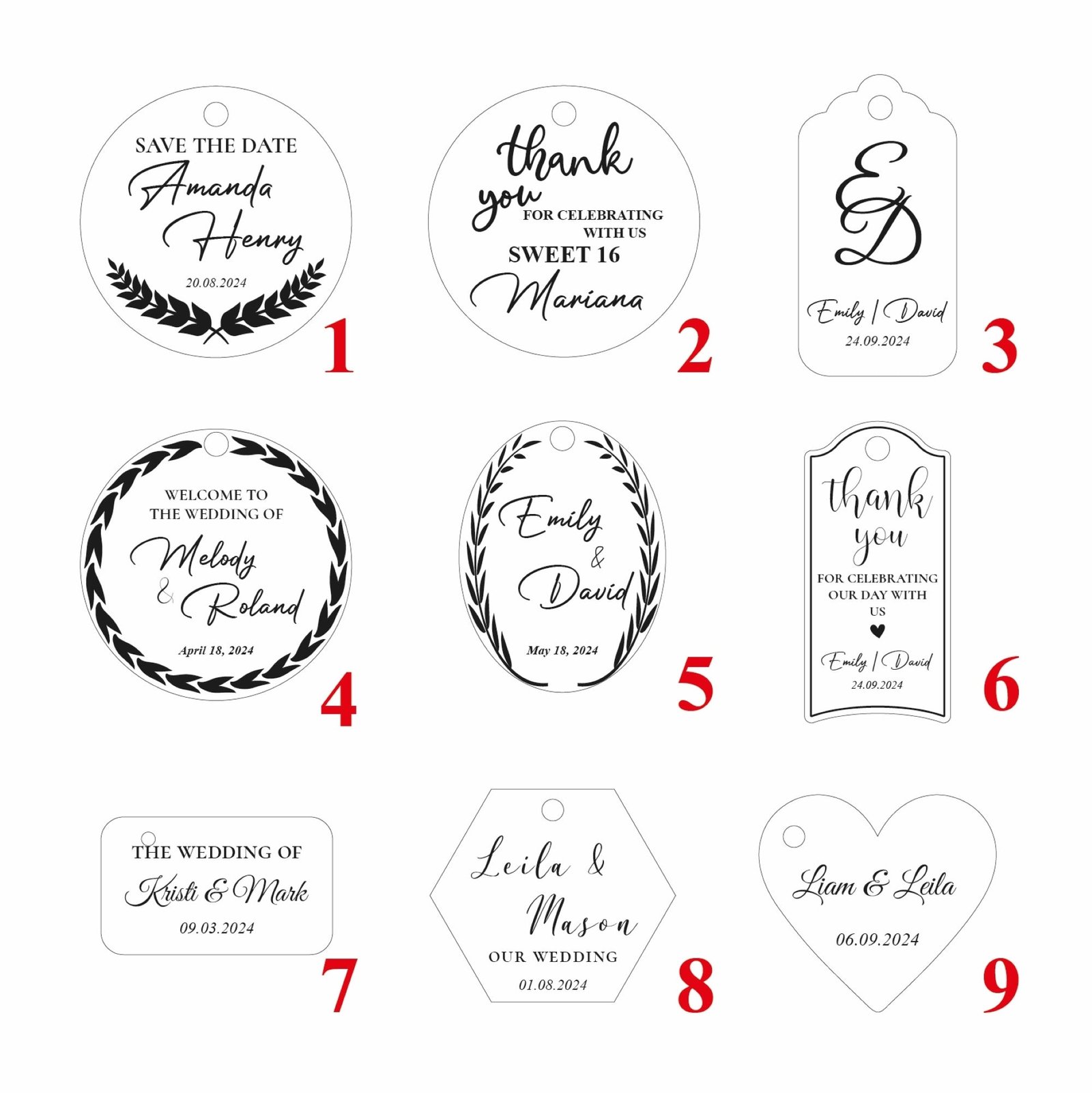 • 🖊️ Personalized to Perfection Customize each tag with your guest’s name, event date, or a heartfelt phrase. Ideal for seating arrangements, gift tags, or thank-you notes.