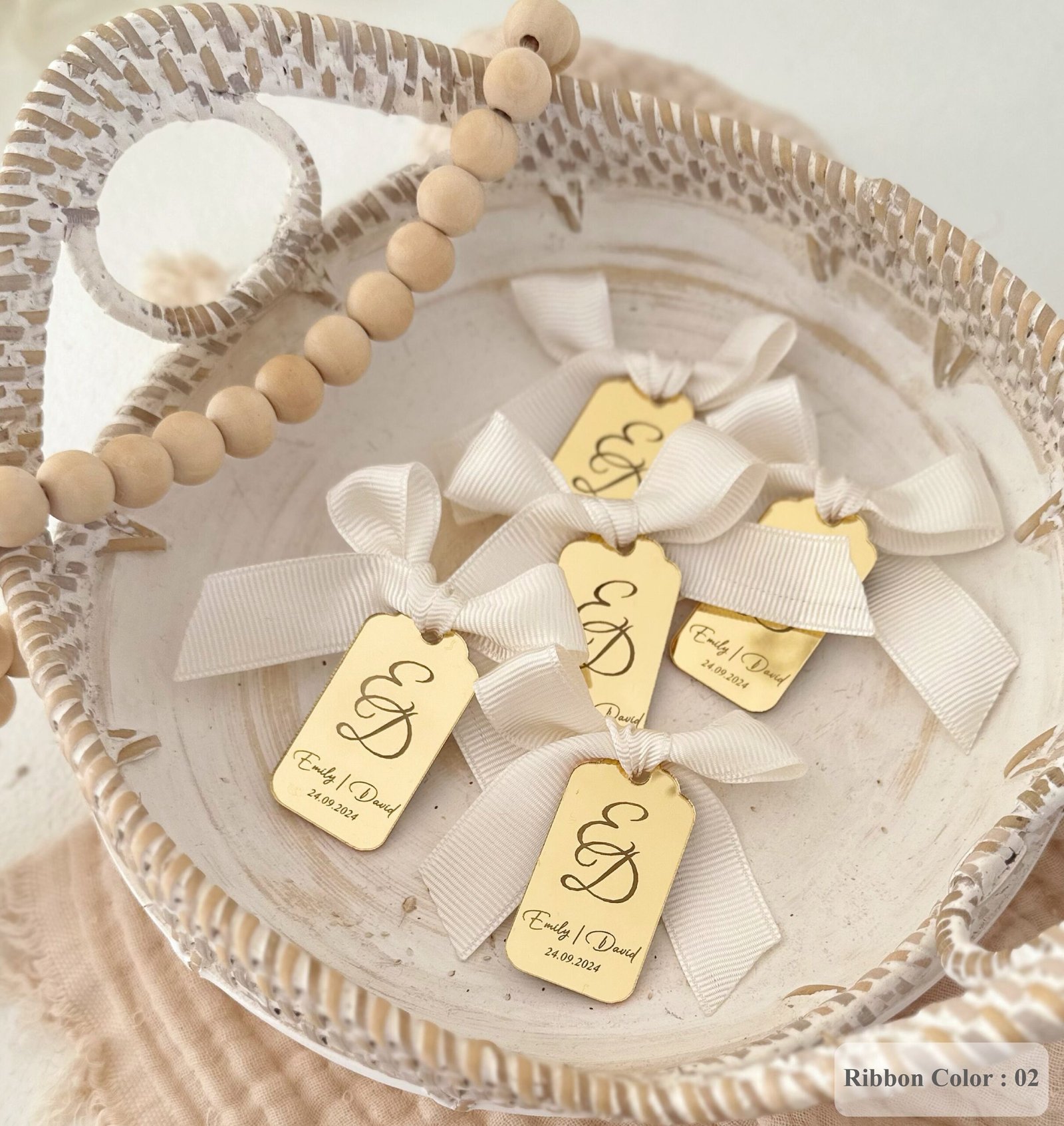 In a world filled with disposable decor, these mirror tags offer longevity, sentiment, and sparkle. While most wedding accessories are quickly forgotten, our personalized mirror tags become treasured keepsakes. They evoke a memory every time a guest sees it on their keychain, dresser, or desk.