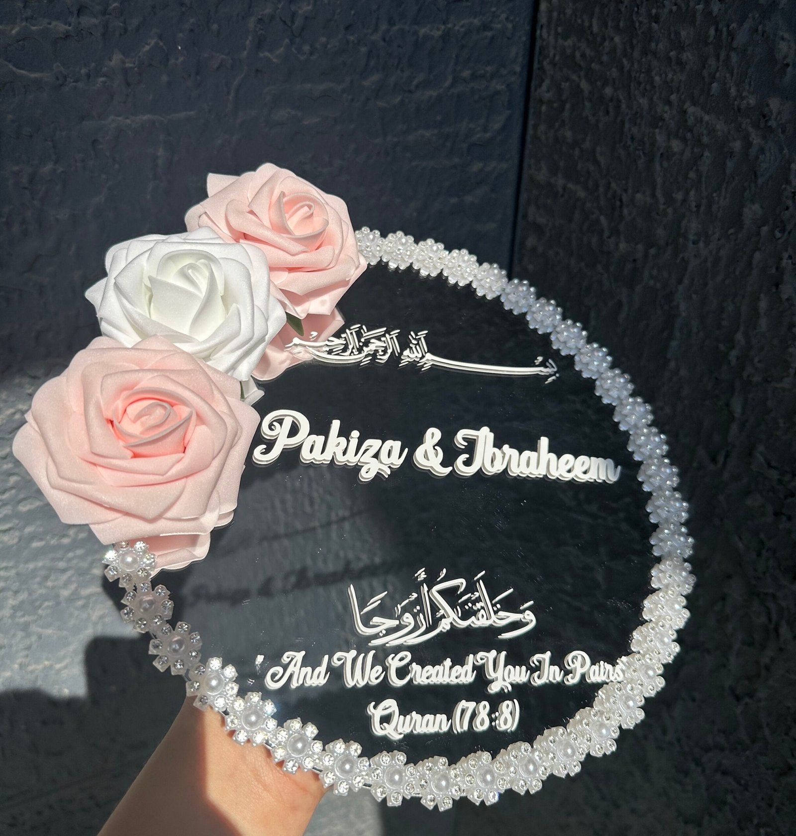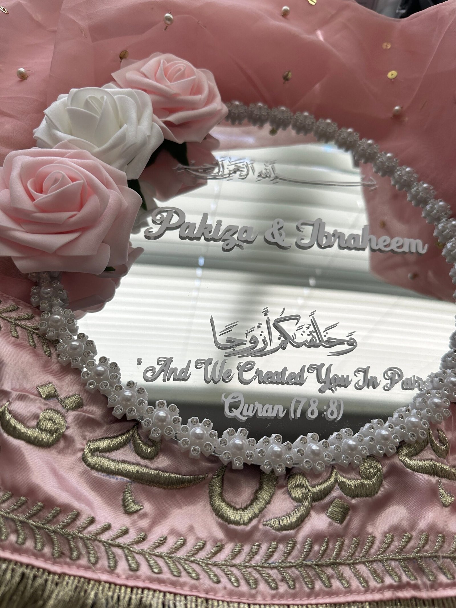 In Islam, a Nikkah is a sacred, soul-binding moment. Every part of the ceremony should feel intentional, symbolic, and beautiful. Our Personalized Mirror Nikkah Ring Tray isn’t just functional—it’s part of the story.