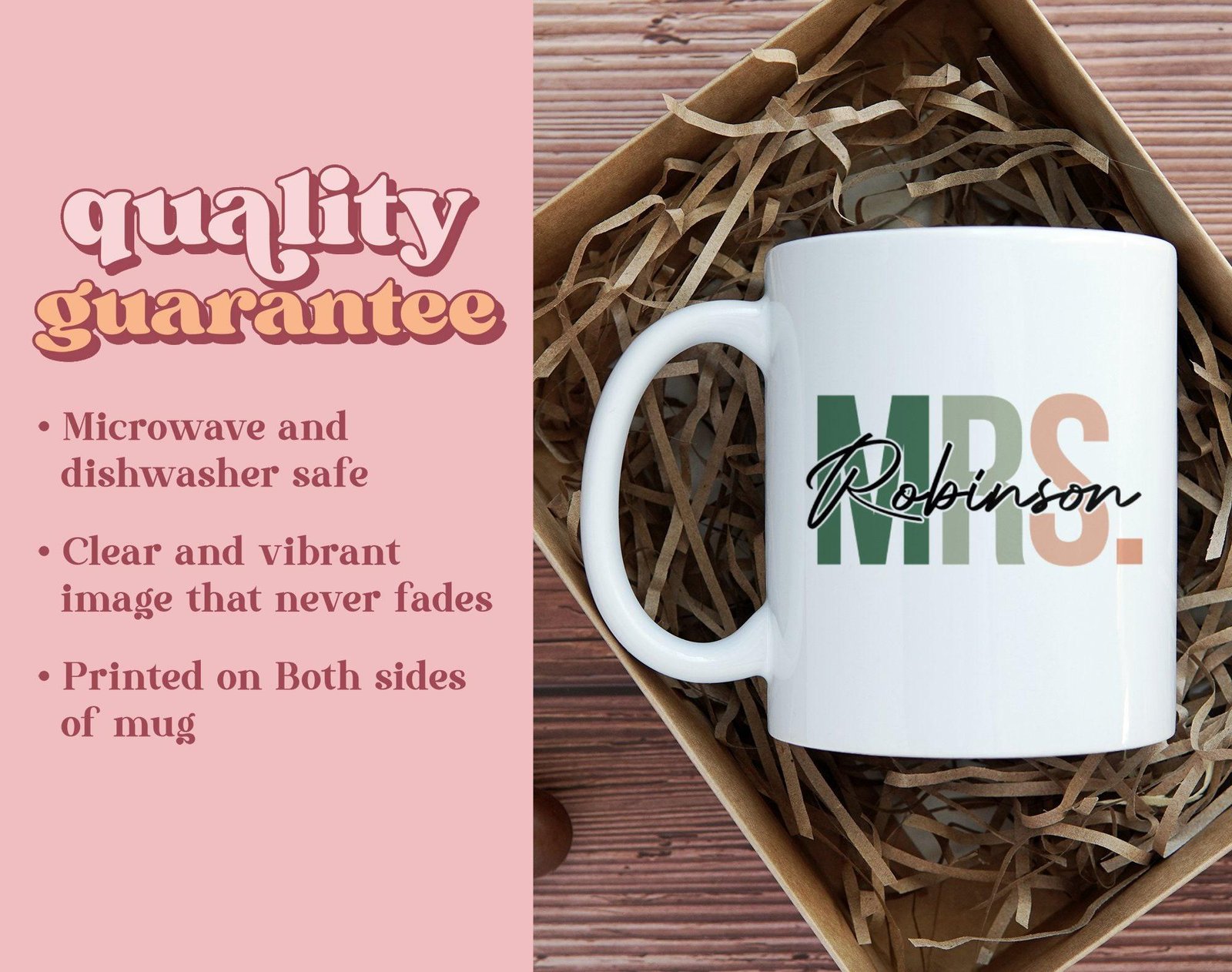 Our personalized mugs are absolutely unique and durable for your everyday use. It is the perfect gift for family and friends. All of our mugs are made and packaged with LOVE in the United States. The mugs are both dishwasher and microwave safe. It is the perfect addition to your home!