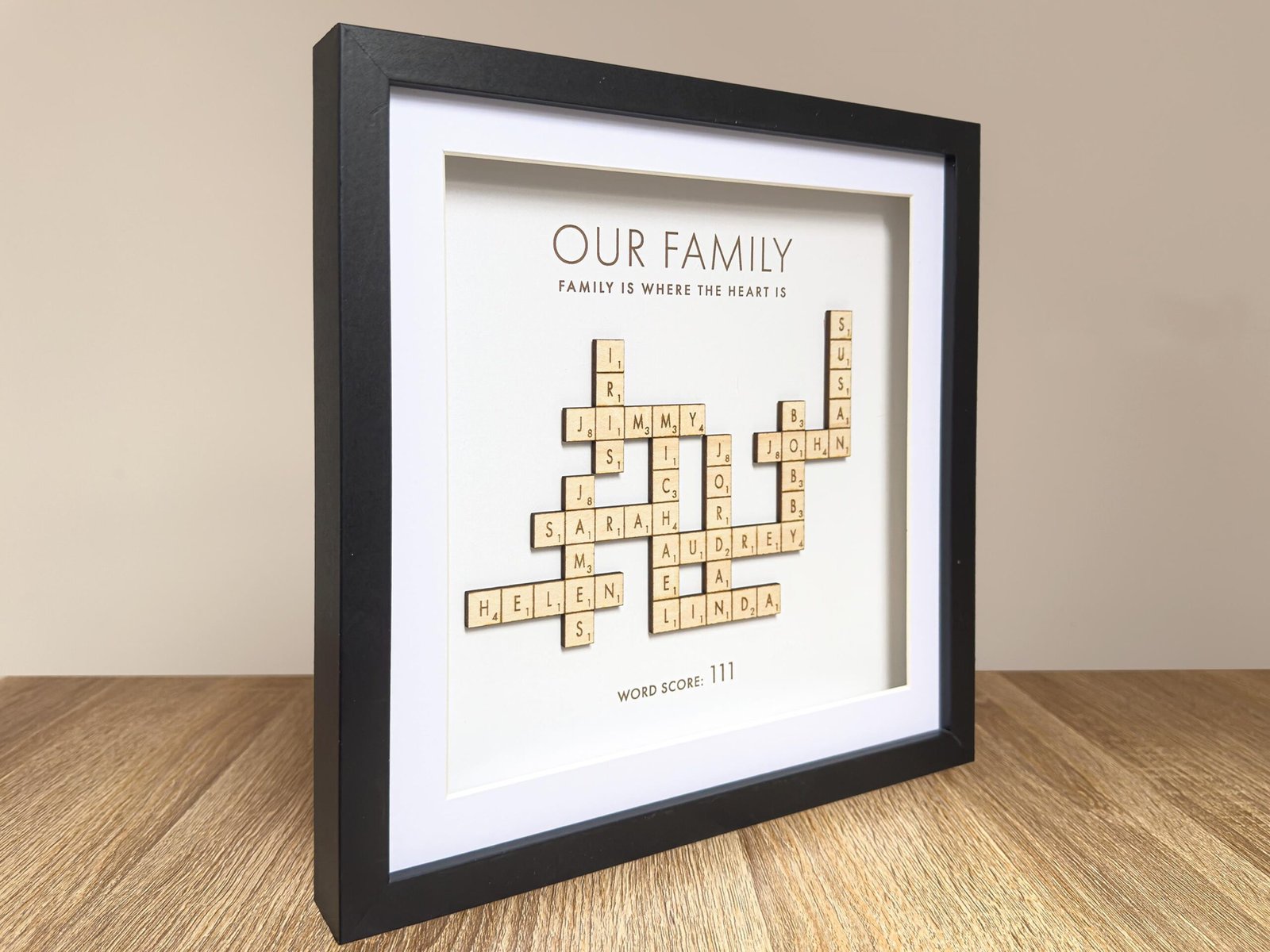 - Thoughtful Gift Idea: Perfect for Christmas, birthdays, or as a keepsake for grandparents, this Scrabble family names frame is a heartfelt and timeless present.
