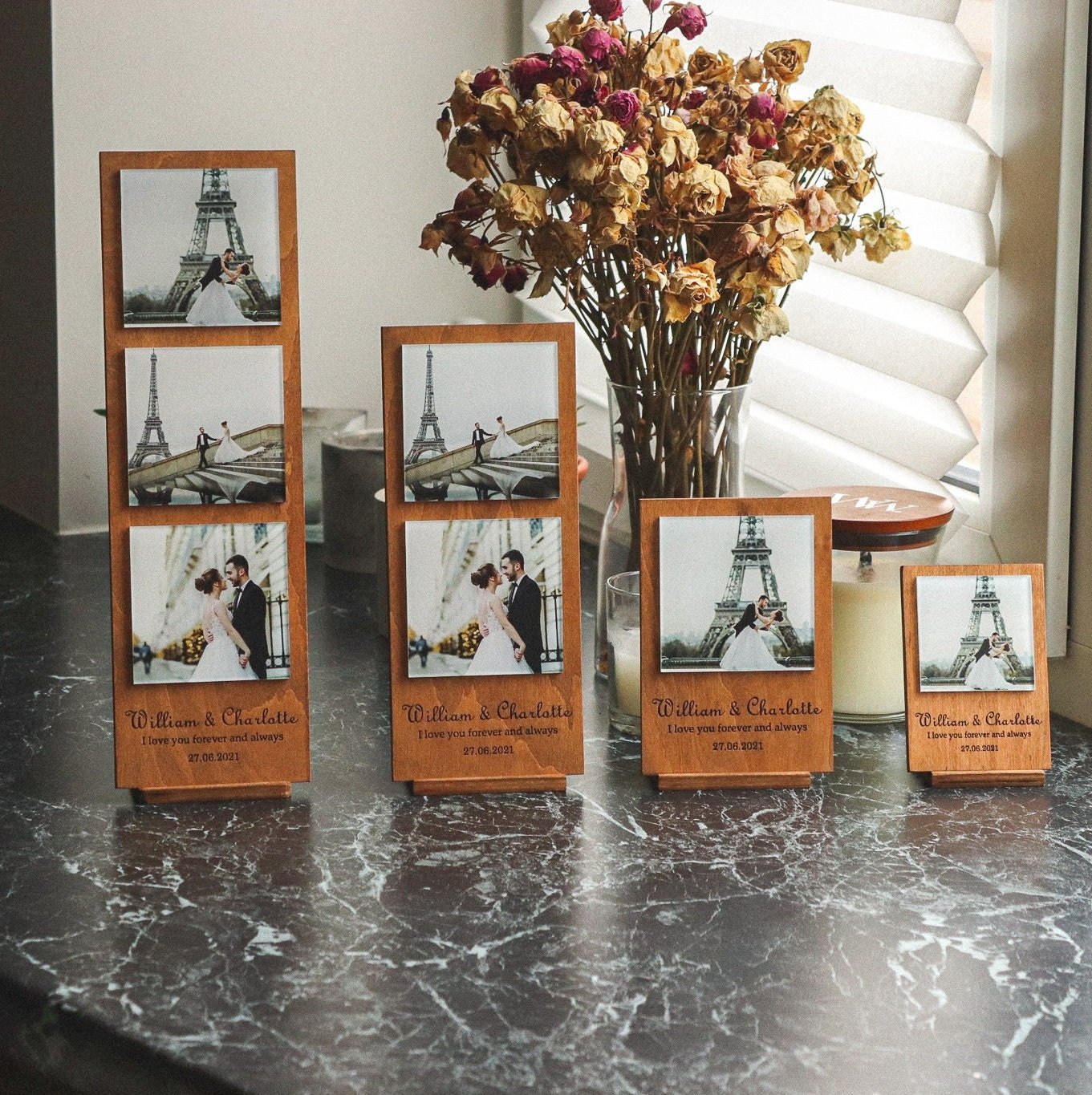 Celebrate love’s journey with personalized wooden photo frames that capture the essence of cherished memories. Whether it’s a romantic wedding gift for couples, a heartfelt 5th-anniversary gift for her, or a thoughtful surprise for your boyfriend’s birthday, these custom frames add a touch of sentiment and beauty to every moment. Discover the art of preserving and displaying love through personalized photo frames that speak from the heart.
