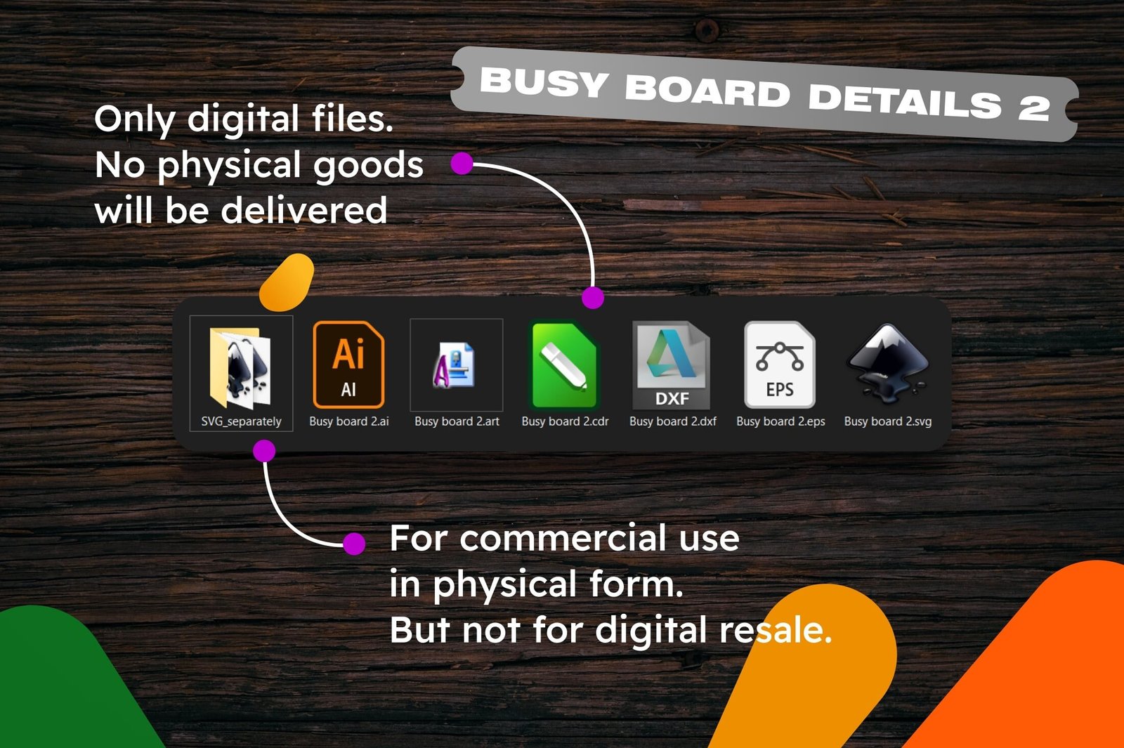 Conclusion: Elevate your crafting experience with our SVG laser cut files set, tailored for creating intricate Busy Board elements with ease and precision. Unleash your creativity and woodworking skills with these toy SVG files, designed for Glowforge and CNC compatibility to bring your DIY projects to life.